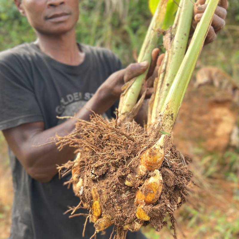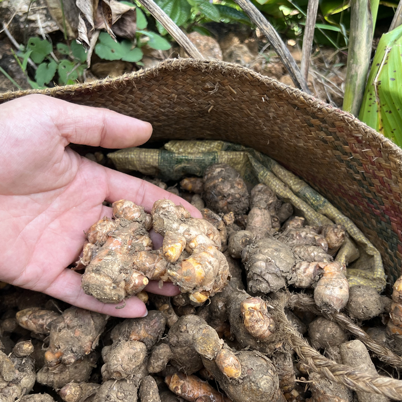姜黄又称作宝鼎香、毛姜黄等,属姜科多年生草本植物,其根茎发达,植株高可达1.5米左右,喜欢雨量丰沛,温度在20℃~30℃的生长环境,根茎切开为橘黄色。姜黄精油是通过蒸馏工艺从其植物根茎中萃取而得,呈深红色的液体,闻起来具有类似咖喱般的味道,姜黄属于倍半萜酮类精油,主要成分为芳姜黄铜(约33~60%)。